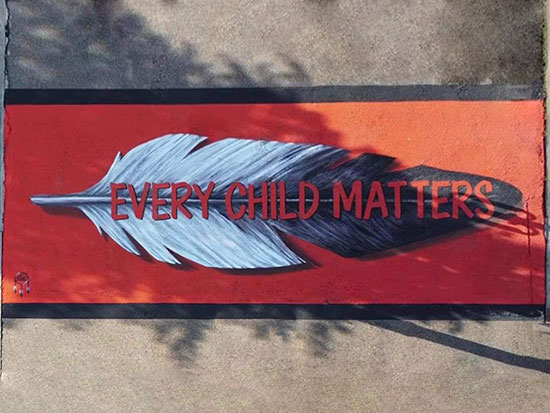 From the artist: “The City approached me to do a sidewalk mural. The Every Child Matters movement was the inspiration,” said Lagrandeur. “It’s all about promoting healing, for everybody. It’s not just for Indigenous culture, it’s for everybody. Every child matters. It doesn’t matter what child what culture, what country, what colour, it’s every child.”