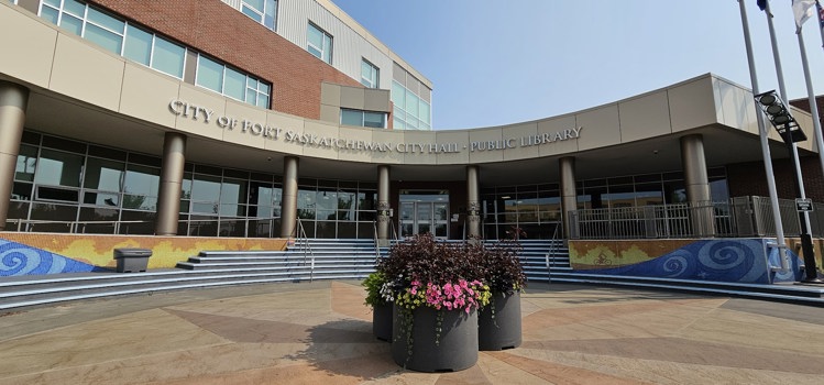Location: 10005 102 Street Painted on the sidewalk outside Fort Saskatchewan City Hall